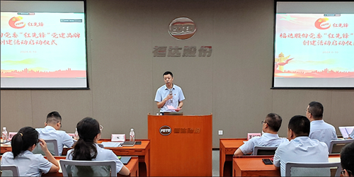 隨后,公司黨委委員陳達(dá)偉同志詳細(xì)介紹了“紅先鋒”黨建品牌的內(nèi)涵、主要措施和實施要求等內(nèi)容。他指出,“紅”是指打造紅色基因,讓黨建與企業(yè)發(fā)展同頻共振、互促共進(jìn),實現(xiàn)“黨建強、發(fā)展強”的目標(biāo);“先鋒”是代表行業(yè)特性,代表公司從事的是先進(jìn)制造業(yè),代表組織及隊伍特色,代表工作重點,鼓勵及倡導(dǎo)黨員、骨干和積極分子在攻堅克難方面主動發(fā)揮“先鋒”帶頭作用。同時,他從開展“立體學(xué)習(xí)”、打造“黨建+”體系工程、建立“三亮兩創(chuàng)”機制、實施“聚力行動”和加強宣傳陣地建設(shè)等5大方面詳細(xì)闡述品牌實施具體措施和要求,通過一系列創(chuàng)新舉措和扎實工作,努力將“紅先鋒”打造成為具有鮮明特色、廣泛影響力的福達(dá)黨建品牌。
