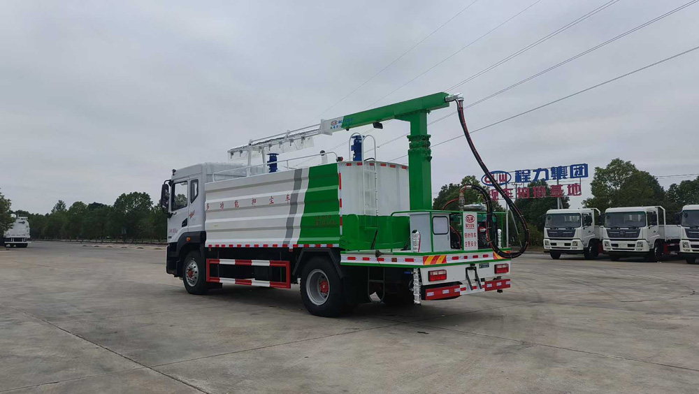 三、多功能抑塵車工作原理:霧炮機將水高壓霧化為50μm左右的細小顆粒,再通過遠程風炮將水霧送至100至120米半徑范圍內,作業5分鐘即可實現覆蓋區域面積4.5萬多平方米,是局部降低因PM2.5、PM10顆粒物超標而造成的霧霾污染的理想技術,是一種更先進、更科學、能耗更低、凈化效果顯著的新型空氣凈化技術。