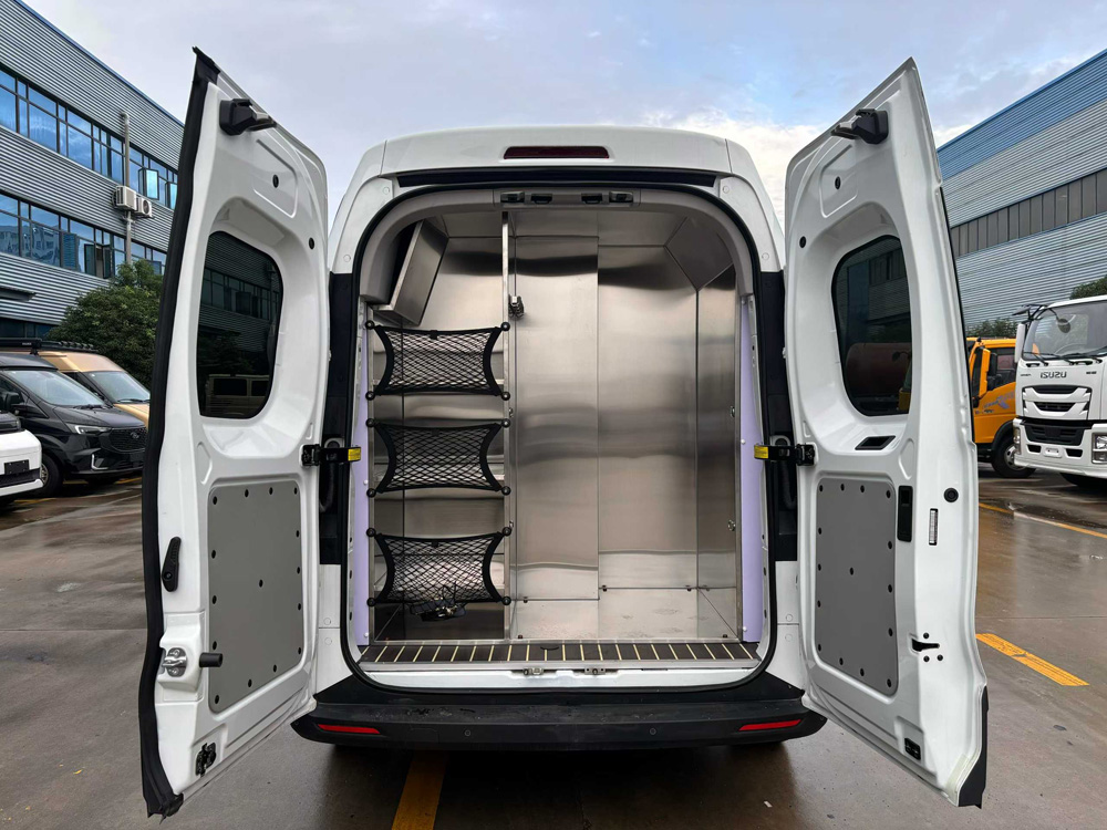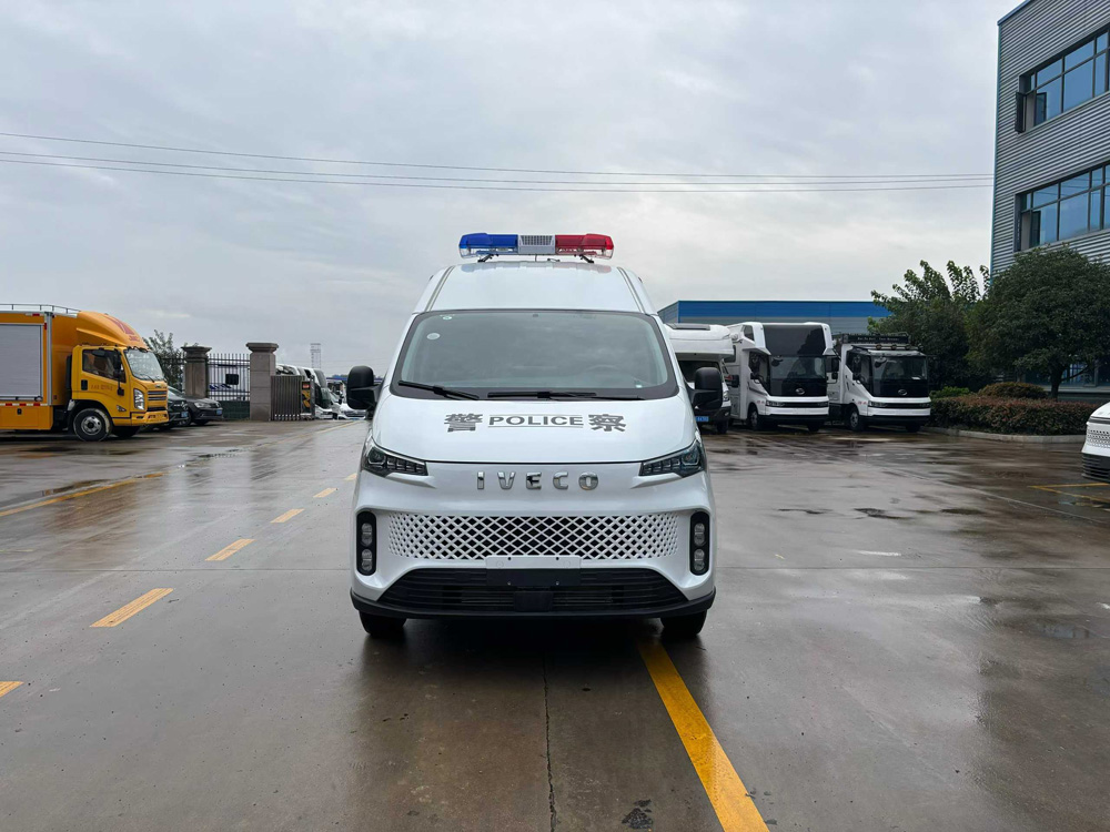 一、底盤配置: 采用依維柯商務車NJ6546FDC5C車身,配置玉柴SC20M125.1Q6發動機93/125馬力,國六排放標準,軸距3366(mm),整備質量2.49噸,額定載質量1.06噸,五擋變速箱,帶動力轉向,帶原廠空調,該車配備器械存放柜,主要用于特種人員的運送; 選裝限速裝置,發動機ECU限速,限速100km/h,SC20M125.1Q6發動機僅匹配手動變速器對應的油耗值為7.3L/100km,最高車速為156km/h; ABS生產企業:博世汽車部件(蘇州)有限公司,ABS型號:ESP9; 選裝ETC車載裝置; 該車配備汽車事件數據記錄系統(EDR); 僅采用后軸為鋼板彈簧懸架; 隨底盤選裝大燈樣式,后視鏡樣式,中網樣式; 選裝內部布局樣式,選裝低頂樣式,選裝電動踏板,選裝輪轂樣式.該車上藍牌,城區道路不限行。